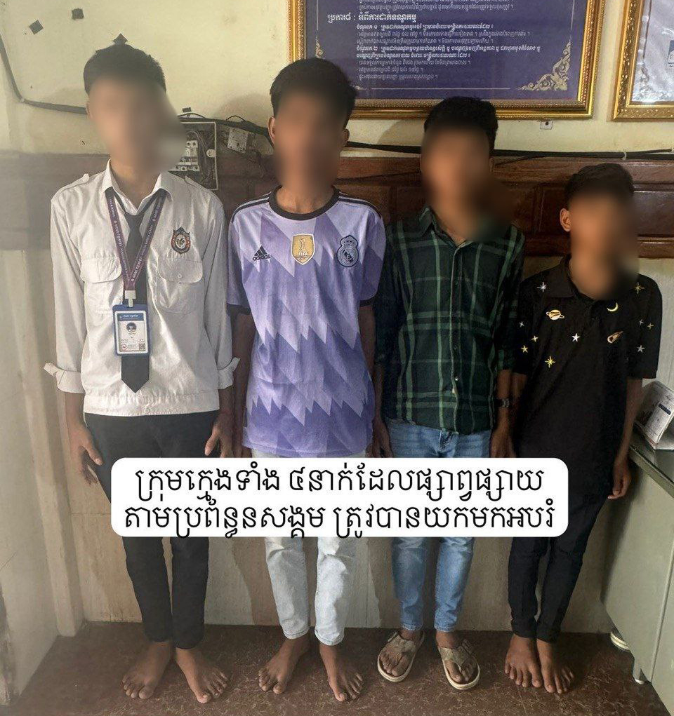 (បន្ទាយមានជ័យ)៖ បន្ទាប់ពីមានព័ត៌មានមួួយត្រូវបានគេបង្ហោះលើបណ្តាញសង្គមហ្វេសប៊ុក មានក្មេងៗសិស្សសាលាមួយក្រុម បានជួបជុំគ្នានៅហាងការហ្វេមួយ នៅក្រុងប៉ោយប៉ែត គេចសាលាមិនចូលរៀន នាំគ្នាជក់បារី ក្នុងកាយវិការមិនសមរម្យ នៅថ្ងៃទី០៥ ខែមិថុនា ឆ្នាំ២០២៤ វេលាម៉ោង១២និង៣០នាទីរសៀល លោកឧត្តមសេនីយ៍ទោ សិទ្ធិ ឡោះ ស្នងការនៃស្នងការដ្ឋាននគរបាលខេត្តបន្ទាយមានជ័យ បានបញ្ជាឲ្យនគរបាលផែនព្រហ្មទណ្ឌ និងកម្លាំងអធិការដ្ឋាននគរបាលក្រុងប៉ោយប៉ែត ចុះស្រាវជ្រាវនិងបានឃាត់សិស្សសាលាទាំងនោះ យកមកសួរនាំ និងធ្វើការអប់រំ។