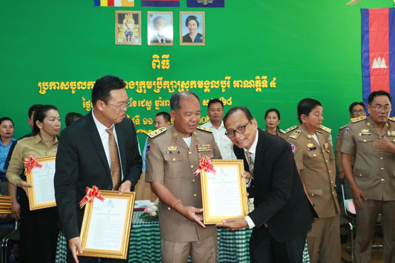 (បន្ទាយមានជ័យ)៖ប្ដេជ្ញា ពង្រឹងនូវស្មារតីសាមគ្គីភាពឯកភាពផ្ទៃក្នុង និងប្ដេជ្ញាគោរពនិងអនុវត្តឱ្យបានខ្ជាប់ខ្ជួននូវកម្មវិធីនយោបាយនិងយុទ្ធសាស្ត្របញ្ចកោណដំណាក់កាលទីមួយ របស់រាជរដ្ឋាភិបាលក្រោមការដឹកនាំប្រកបដោយគតិបណ្ឌិត របស់សម្តេចមហាបវរអធិបតី ហ៊ុន ម៉ាណែត នាយករដ្ឋមន្ត្រី នៃព្រះរាជាណាចក្រកម្ពុជា ដើម្បីកំណើនការងារសមធម៌និងប្រសិទ្ធភាព និងចិរភាពកសាងមូលដ្ឋានគ្រឹះឆ្ពោះទៅសម្រេចចក្ខុវិស័យកម្ពុជាឆ្នាំ២០៥០។ នេះគឺជាការប្ដេជ្ញាចិត្ត របស់លោក កែវ តុម ដែលត្រូវបានធ្វើពិធីប្រកាសចូលកាន់តំណែងជាប្រធាន ក្រុមប្រឹក្សាស្រុកមង្គលបូរី និងសមាជិកក្រុមប្រឹក្សាចំនួន២០រូប សរុបចំនួន២១ រូបនាព្រឹកថ្ងៃទី១១ ខែមិថុនា ឆ្នាំ២០២៤ ក្រោមអធិបតីភាពឯកឧត្ដម ប្លែក វ៉ារីប្រធានក្រុមប្រឹក្សាខេត្ត និងឯកឧត្តម អ៊ុំ រាត្រី អភិបាលខេត្តបន្ទាយមានជ័យ។